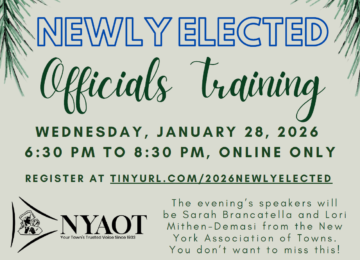 All newly elected officials are welcome to join the Tug Hill Commission and NY Association of Towns of Wednesday, January 28, 2026 at 6:30 p.m. for a two-hour, information packed, Zoom workshop. Presenters Sarah Brancatella...