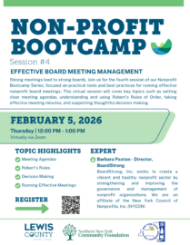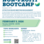 We’re excited to invite you to the next session in our Nonprofit Bootcamp Series, focusing on Effective Board Meeting Management! Strong meetings lead to strong boards, and this one-hour virtual session will focus on practical,...