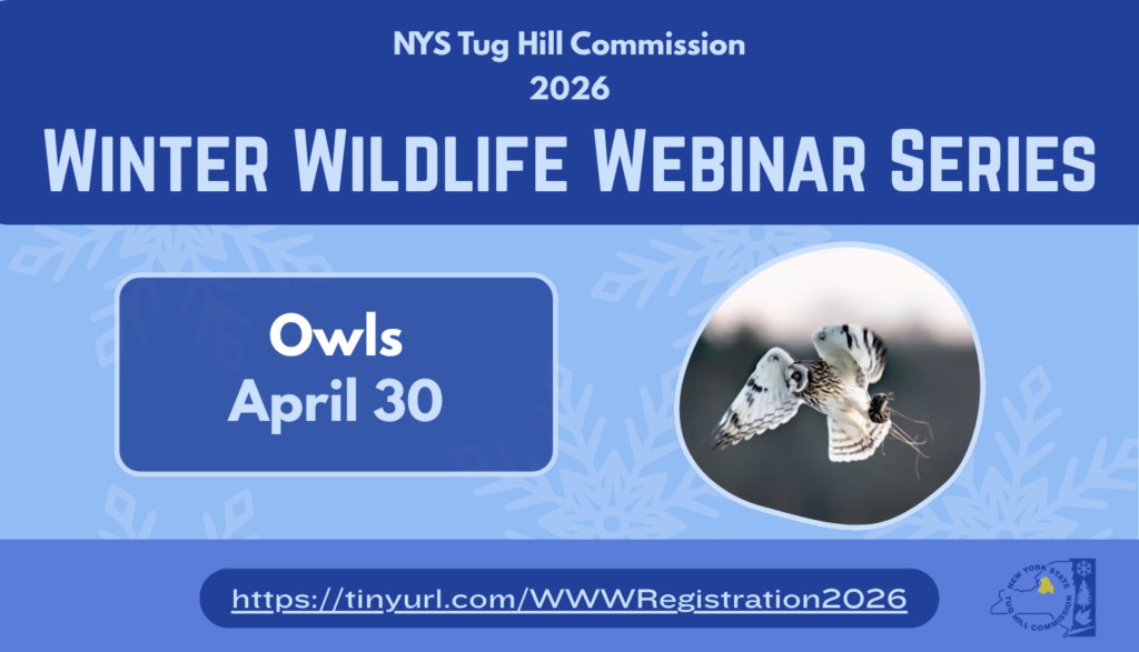 The final part of the Winter Wildlife Webinar series will take place on Thursday, April 30, at 7 p.m. Participants will hear from Linda Gibbs, Community Programs Director at Tug Hill Tomorrow Land Trust, and Irene Mazzocchi, retired Region 6 NYSDEC Wildlife Biologist. They will highlight several species of owls that can be found in Tug Hill backyards and address some of the challenges these birds face. Registration for the webinar series can be found here. Please reach out to maria@tughill.org with any questions.