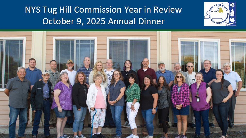 Over 140 local, county, and state officials, as well as partners from organizations across the Tug Hill region, attended the Tug Hill Commission’s annual dinner on October 9 at the Delta Lake Inn near Rome. The commission’s year-in-review presentation is available here: 2025 Commission Annual Meeting Presentation.