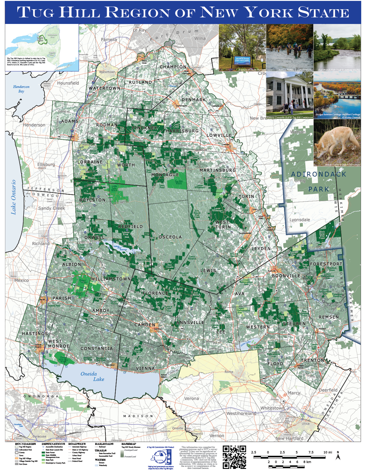 The NYS Tug Hill Commission is a small, non-regulatory state agency charged with “helping local governments and citizens shape the future of the Tug Hill region.” The Tug Hill region includes 41 towns and 18 villages in portions of Jefferson, Lewis, Oneida and Oswego counties. The most recent Tug Hill Regional Brochure and Map are available for download. Learn more about the region and the commission in this video.